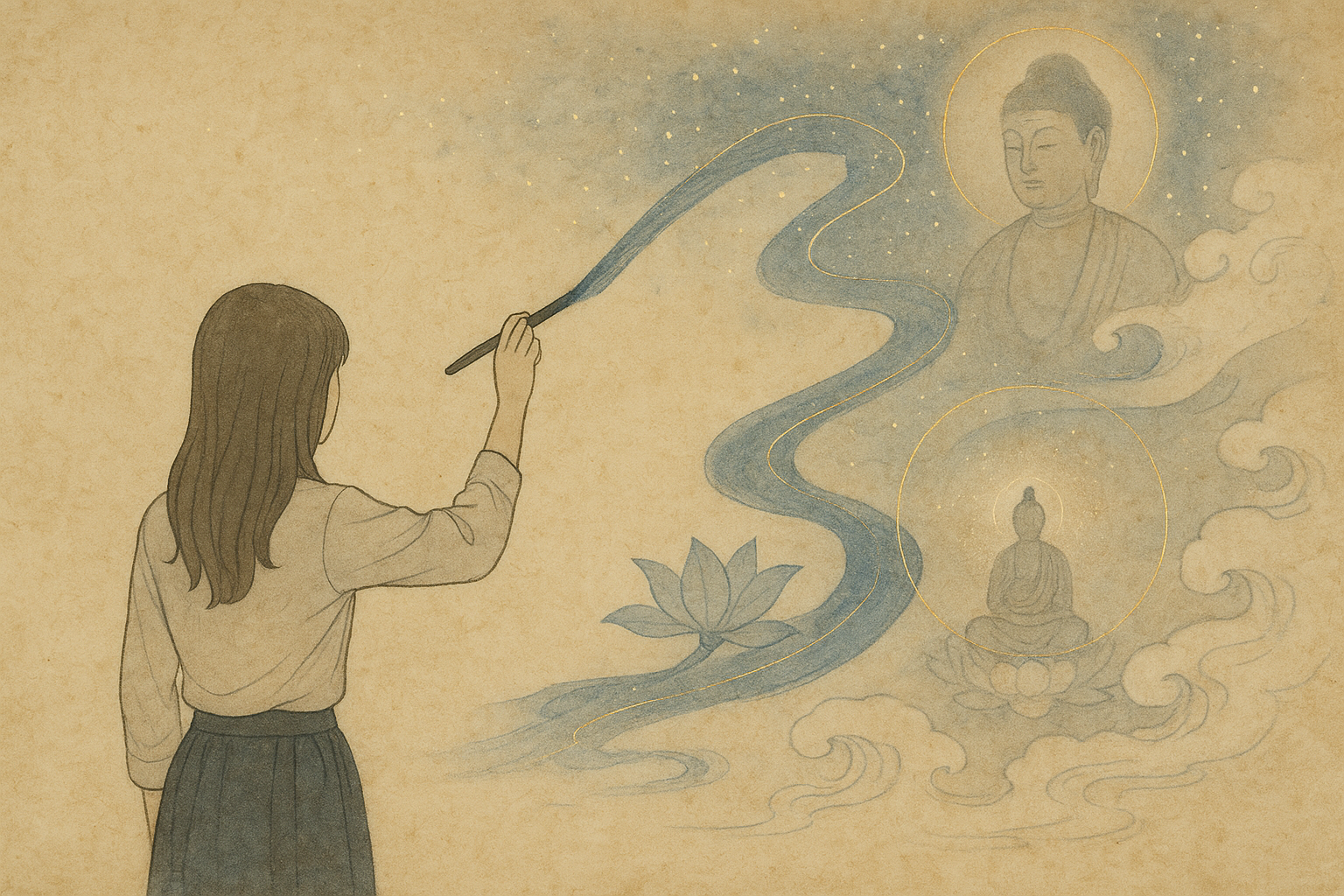 菩薩道は、あなたの人生を大きく変化させます。阿弥陀の無量光が仕事や家庭や人生そのものに自然に浸透する段を経て、法力をその身に宿しながら、人間として到達できる無上の境地へと進みます。